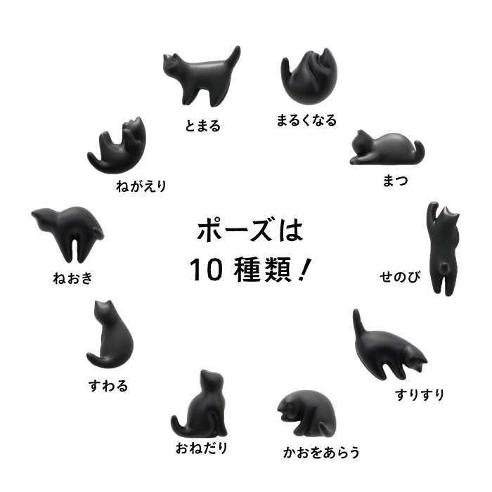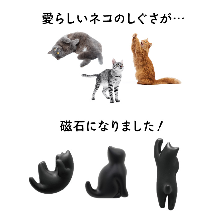 ネコ磁石 10種 マグネット かわいい 猫 ねこ にゃんこ キー 鍵 フック ネコグッズ 黒猫 便利
