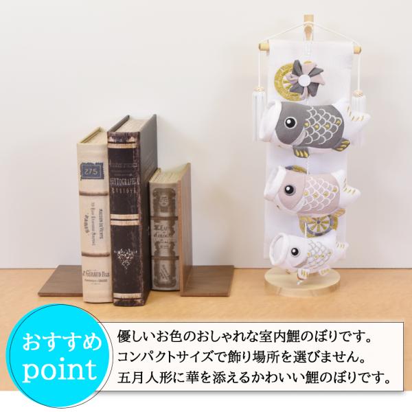 鯉のぼり 室内 こいのぼり 鯉飾り ボタールグレイ 白 中 おしゃれ かわいい ミニ 可愛い 五月人形 卓上 コンパクト 可愛い モダン 飾り棒上部がL字タイプです。