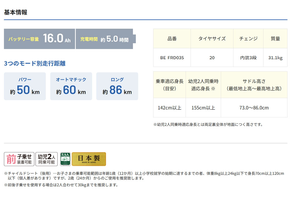 ■適応身長(目安):142cm以上(幼児2人同乗時:155cm以上 )