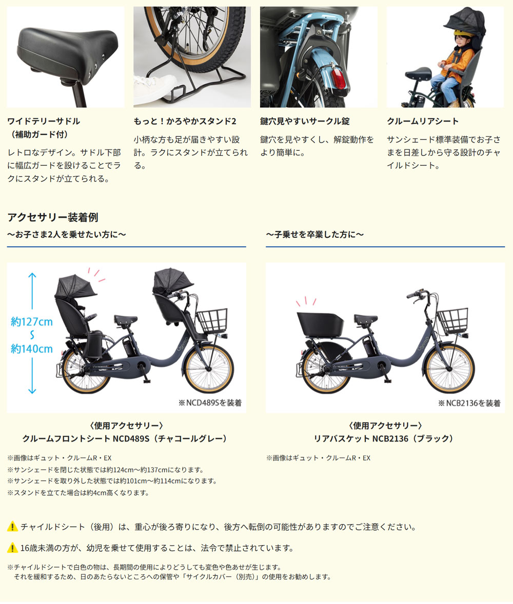 【 ギュット・クルームR・DX / クルーム / Gyutto / BE-FRD035 / 幼児2人同乗可能 / チャイルドシート / リアチャイルドシート / 後ろ子供乗せ / 2026年モデル / 小径車 / 電動アシスト自転車 / 電動自転車 / パナソニック / Panasonic / 日本製 】