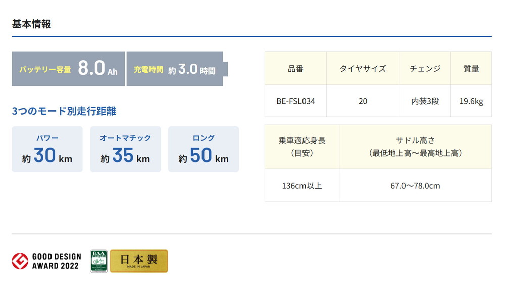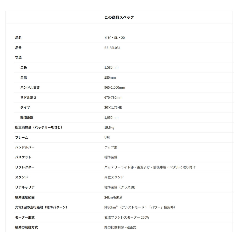 【 ビビ・SL・20 / ビビ / vivi / BE-FSL034 / ショッピング / 小径車 / 電動アシスト自転車 / 電動自転車 / パナソニック / Panasonic / 日本製 】