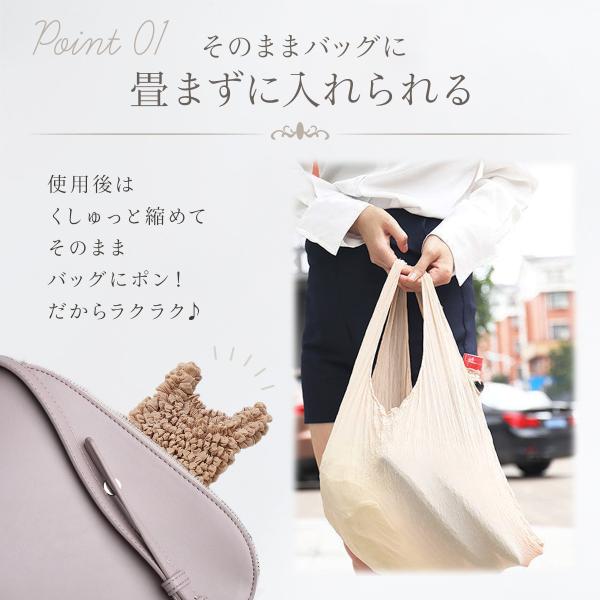 商品名:エコバッグ 小さい 小さめ コンパクト おしゃれ かわいい 大容量 肩掛け 軽量 収納 伸び縮み 小さくなる 伸びる お弁当 ミニ くしゅくしゅ レジ袋 コンパクト トートバッグ 畳まない A4