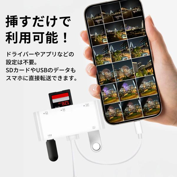SDカードリーダー iPhone android スマホ 7in1 1TB対応 microSD USBメモリ XD TF MS CF Type-c ライトニング タイプC 相互転送 高速 カメラ