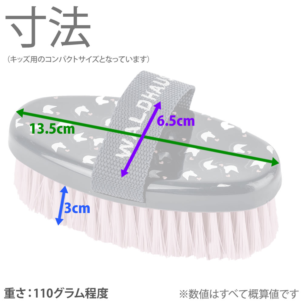 馬とハートのデザインが施された、Waldhausenのキュートなナイロン製のボディ・ブラシです。