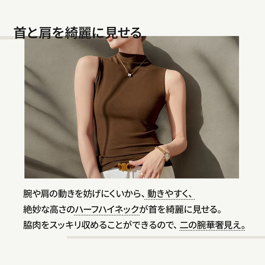 商品キーワード:トップス レディース ミディ丈 薄手 ノースリーブ ハイネック プチハイネック ボトルネック 半袖 春服 夏服 夏シャツ インナー ぴったり タイト レイヤード 華奢見え スタイルアップ シルエット 伸縮 吸湿 きれいめ ベーシック 黒 カーキ ホワイト グリーン カジュアル ボディライン 爽やか スタイリッシュ 20代 30代 40代