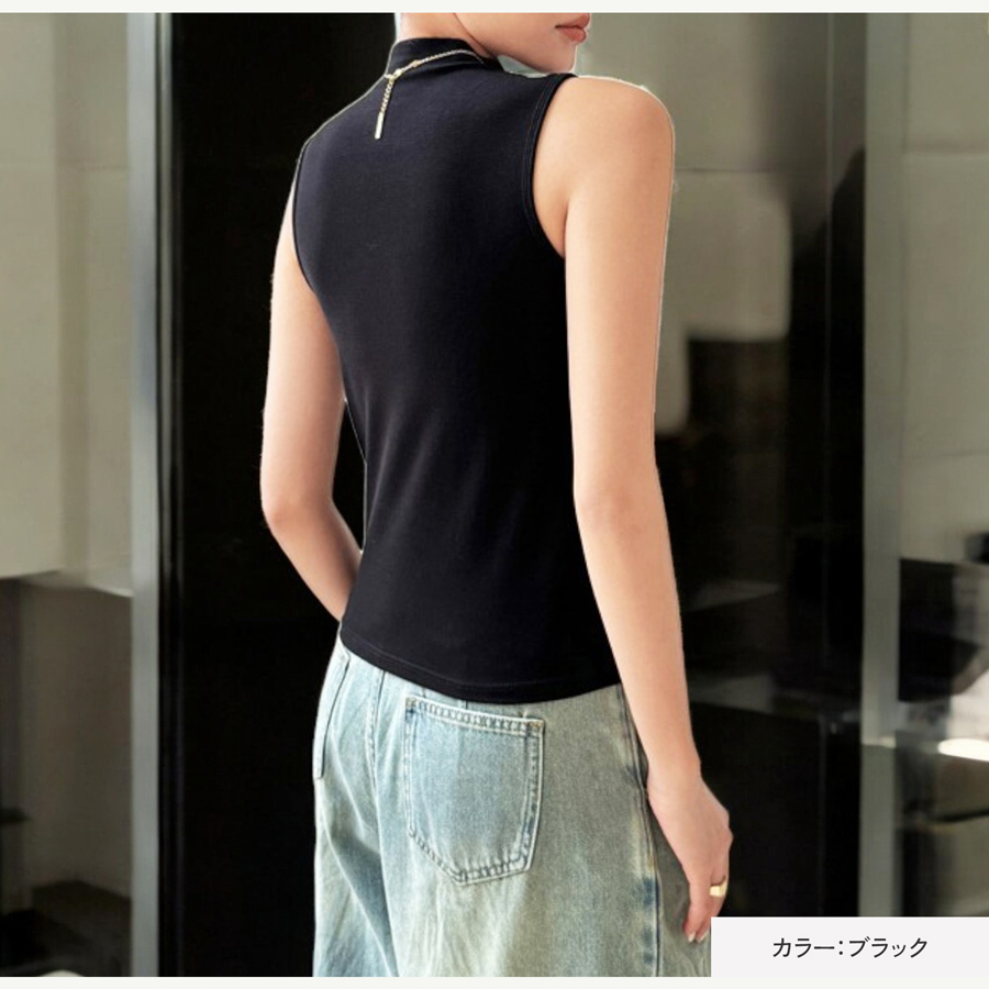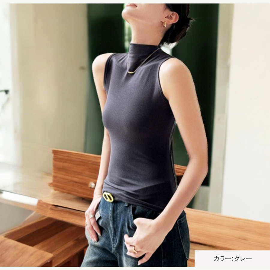 トップス レディース 薄手 ノースリーブ ボトルネック タイト