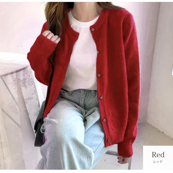 女性らしさ引き立てるノーカラーのニットカーディガン。やや起毛感のあるふんわり柔らかいニット生地で高見えします◎ワンピースに羽織ってもよし、前を留めてトップスとして組み合わせるもよしの万能アイテムです。