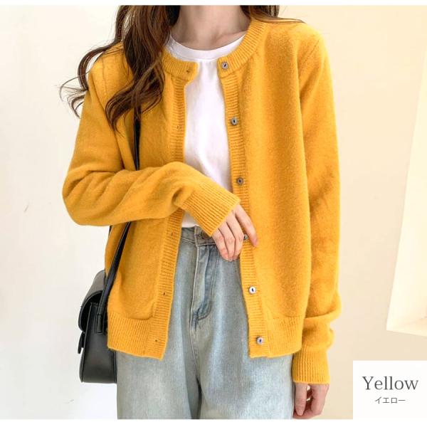 ニット ボタン トップス 黒 赤 灰 黄色 紫 秋 冬 春 無地 クルーネック オフィス 韓国ファッション レディース