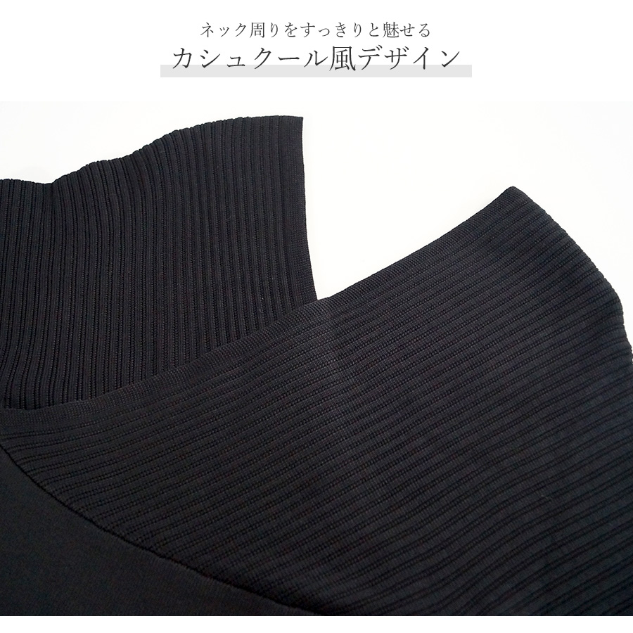 女性らしいラインと程よく開いた胸元がセクシーなニットワンピース。カシュクール風の胸元が開いたデザインは抜け感のある大人な印象を演出してくれます。生地はしっかりとした伸縮性のあるリブニットを使用しているので程よく体にフィットし、ボディラインを綺麗魅せ♪女性らしさを引き立てるシルエットのワンピースは大人っぽく着こなせるので特別な日はもちろん、デイリー使い・デートにもおすすめです。