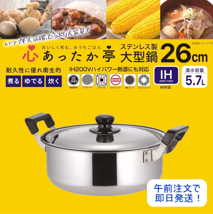 心あったか亭 ステンレス製 大型鍋 26cm MJ-2202 200V・IH対応 ガス火OK ステンレス 両手鍋 なべ 鍋 大型鍋 ゆでる 茹でる 煮る 炊く