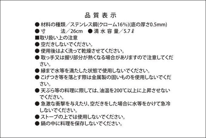 本体:ステンレス鋼(クロム16%)(底の厚さ0.5mm)