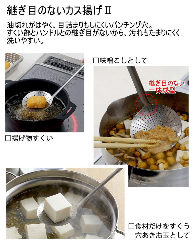 揚げ物のほか、みそこしや穴あきお玉としてもお使いいただけます。