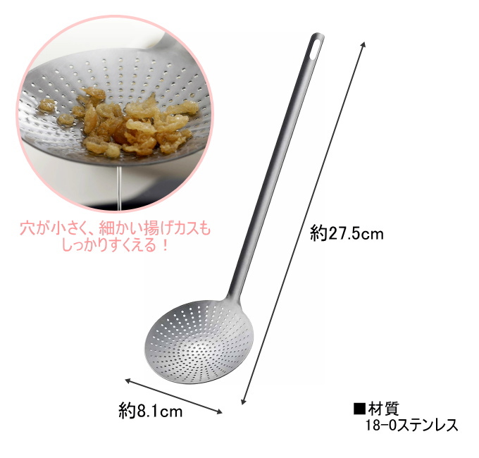 穴が小さく細かい揚げカスもしっかりすくえる。