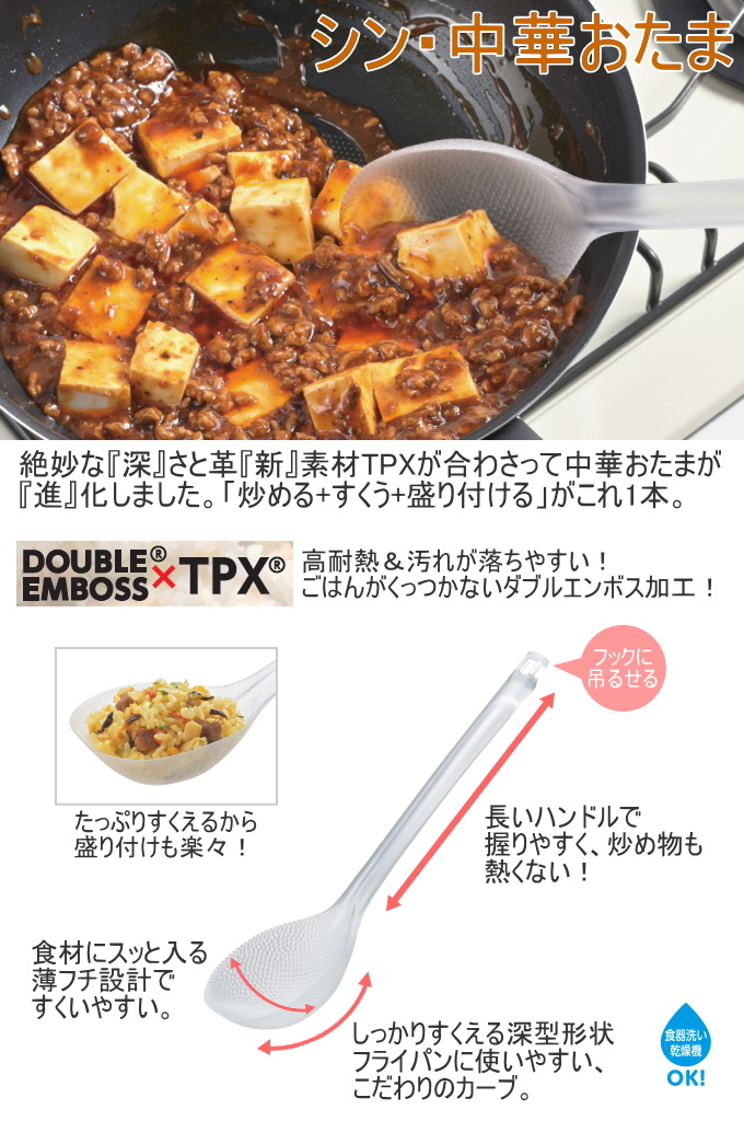 シン・中華おたま 1本 日本製 お玉 中華おたま 炒める 便利グッズ アイデアグッズ 高耐熱 TPX ダブルエンボス加工 曙産業 クリア スモーク