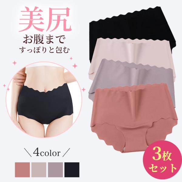 シームレスショーツ ハイウエスト 3枚 レディース 深履き 大きいサイズ お腹すっぽり 女性下着 フィット感 温活 縫い目なし 無縫製 産後 通気性 伸縮性