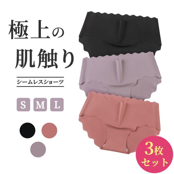 シームレス ショーツ レディース シームレスパンツ ショーツ 3枚セット 無縫製 かわいい浅履き スカラップ ラインが出ない くすみカラー インナー