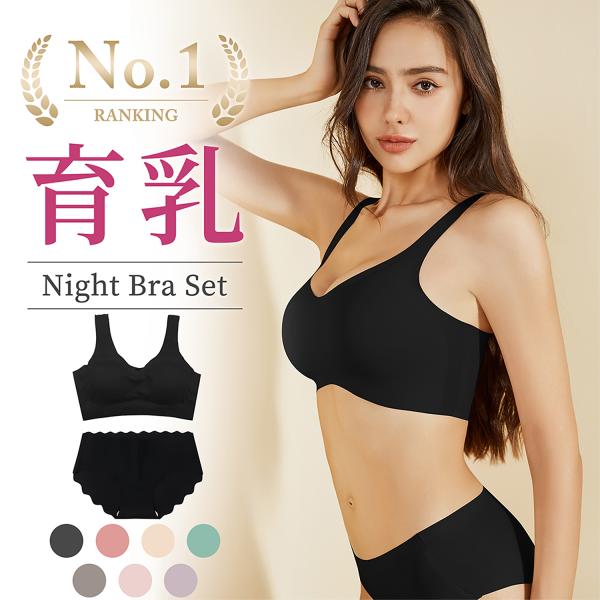ナイトブラ ショーツセット 育乳ブラ ノンワイヤー 無縫製 上下セット 昼夜兼用 シームレスブラ レディース 下着 脇高設計 締付け感なし 脇肉スッキリ 谷間 夏