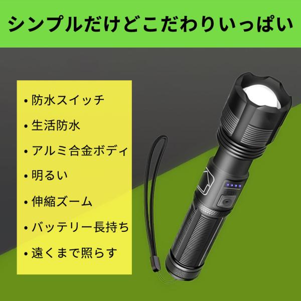 最強 軽量 LED懐中電灯 USB充電 ハンディライト LEDライト IPX6防水 小型 超高輝度 作業 アウトドア 夜釣り 地震/防災/停電対策