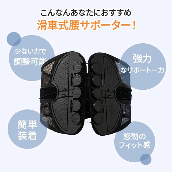 滑車式で腰をガッチリ支え、どんな腰の形にも隙間なく密着し、感動のフィット感。