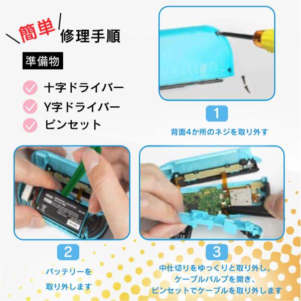 ・Switchコントローラーは精密機器なので、修理は慎重に行ってください。