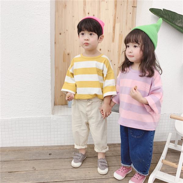 キッズ ベビー服 海外 子供服 夏 長袖 トップス Tシャツ ブラウス 秋 プルオーバー カットソー シンプル 女の子 無地 キッズ用 ジュニア ベビー用 子供服 子ども服 こども 兄弟 お揃い 安い 激安 人気 外出 お出かけ コーデ コーディネート ペアルック