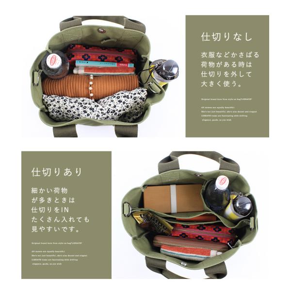 トートバッグ トートバック レディース キャンバス キャンパス 仕切り バッグ 仕切り付き 仕切りトート キャンバストート 帆布 ショルダーバッグ 2way 斜め掛け LIZDAYS リズデイズ 仕切り付きトートバッグ ミニトート 小さめ ショルダー ランチトート ランチバッグ