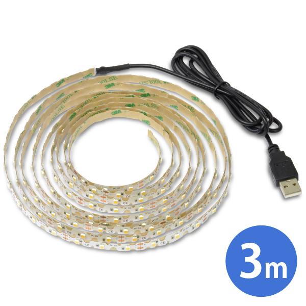 LED テープ ライト (リモコン式 USB 延長ケーブル付)LEDテープライト(90度 曲がる)貼レルヤ USB(昼光色 6000K/電球色 3000K)3m + リモコン ケーブル