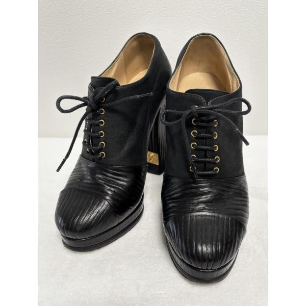CHANEL シャネル レースアップ ブーティ 38.0 23.5cm ヒール12 異素材コンビ ココマーク ゴールド金具 ブラック イタリア製 高級 6454059