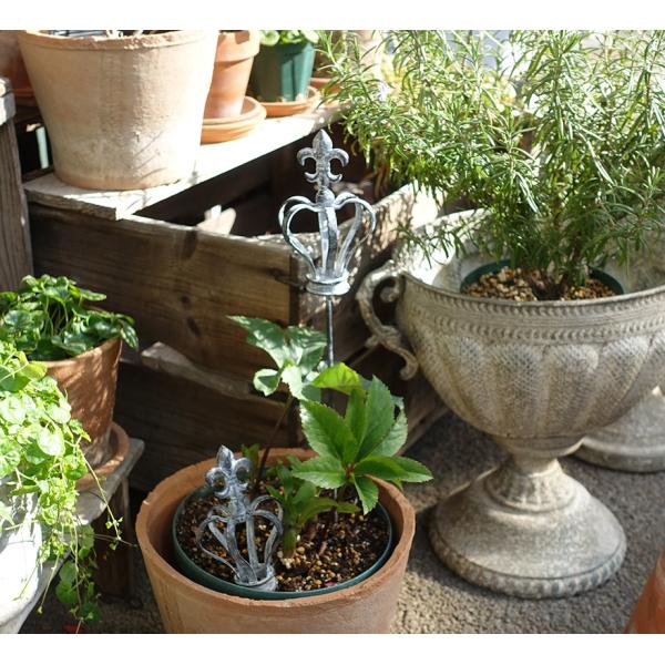 王冠を模ったプラントピック。サイズ:幅6.5×高さ16×奥行6cm/差し込み部分4.5cm 材質:アイアンアンティーク仕様