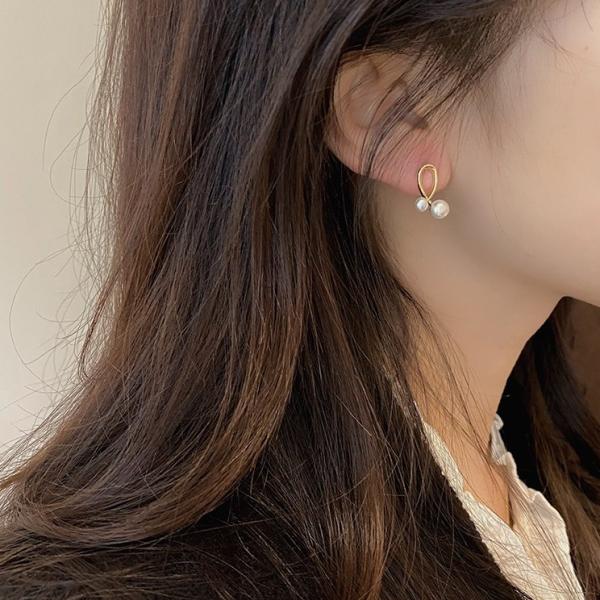 小粒パール&さくらんぼフォルムの組み合わせが女性らしさを引き立たせるピアス。