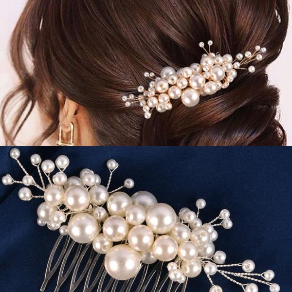 パールとラインストーンを丁寧にはめ込んだヘアコーム。