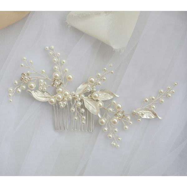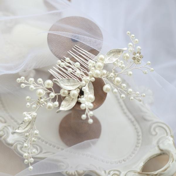 パールとラインストーンを丁寧にはめ込んだヘアコーム。