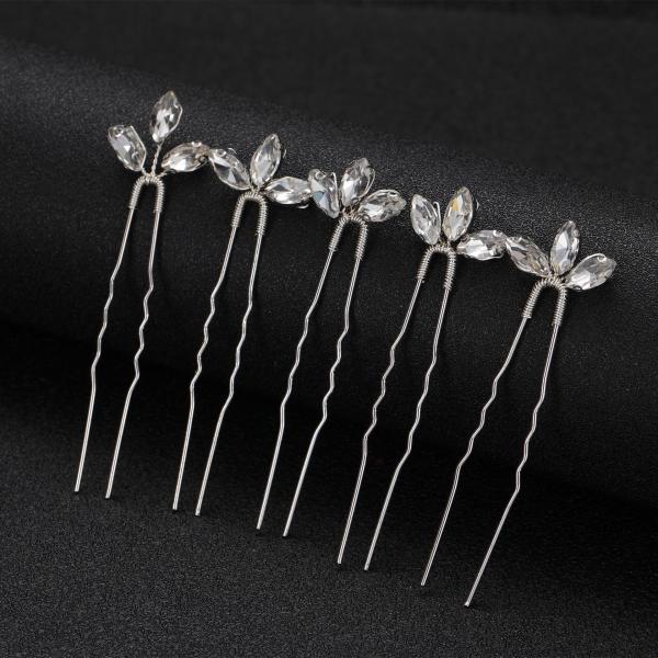 リーフモチーフのビジューが輝くヘアピン3点セット。