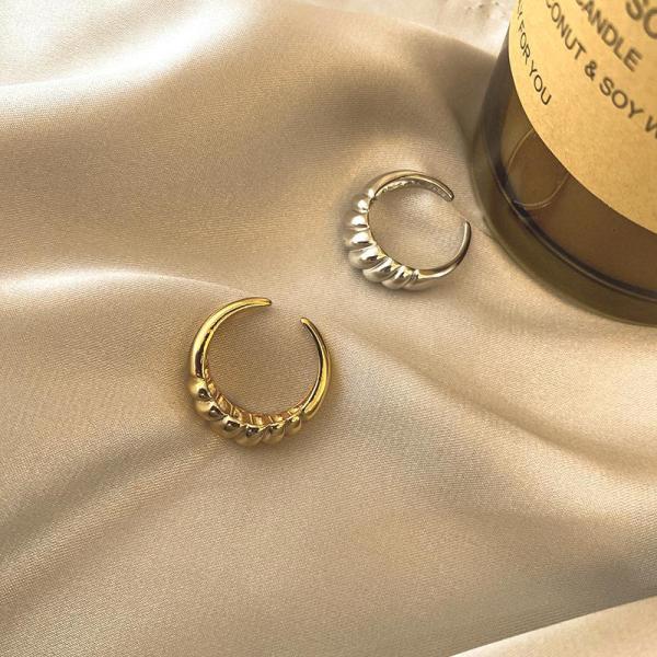 ドレスアップから普段使いまで、ひとつ付けるだけでも存在感のあるクロワッサンデザインのオープンリングです。