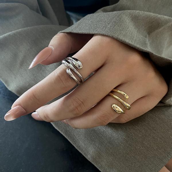 ドレスアップから普段使いまで、ひとつ付けるだけでも存在感のあるティアドロップ&ワインディングデザインのオープンリングです。