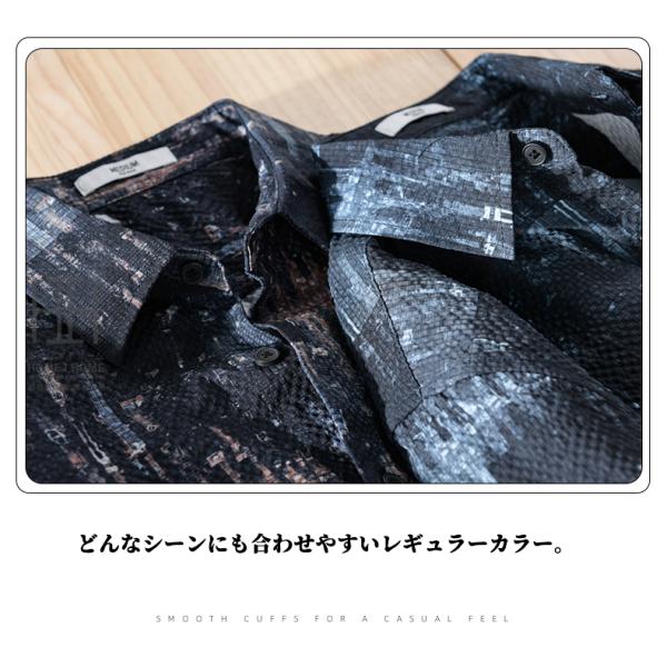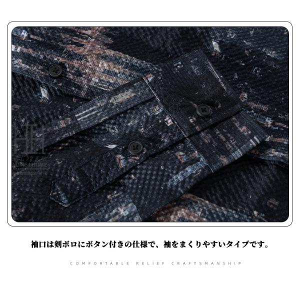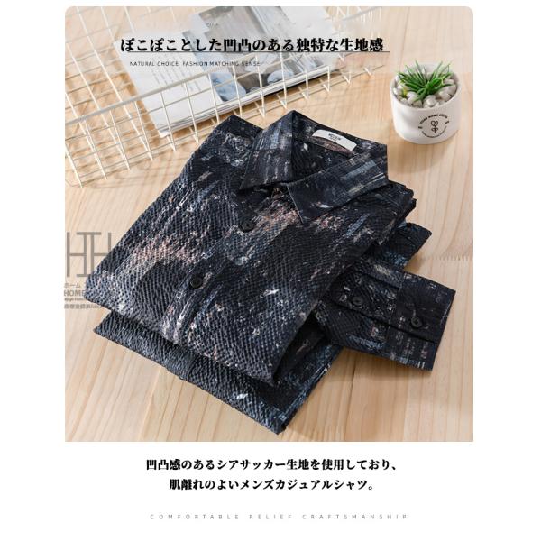 シャツ メンズ 長袖シャツ メンズシャツ カジュアルシャツ 総柄 プリント 凹凸感 シアサッカー 個性 デザイン おしゃれ 春夏 春秋 羽織り トップス