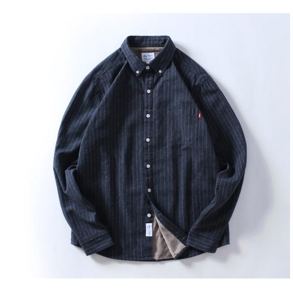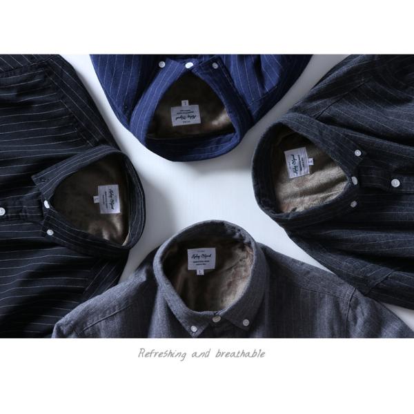 ボタンダウンシャツ ストライプシャツ メンズ 長袖 裏起毛シャツ 裏ボア 暖かい 保温 おしゃれ メンズシャツ ワークシャツ メンズファッション トップス