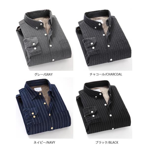 ボタンダウンシャツ ストライプシャツ メンズ 長袖 裏起毛シャツ 裏ボア 暖かい 保温 アメカジ カジュアルシャツ ワークシャツ カジュアル トップス