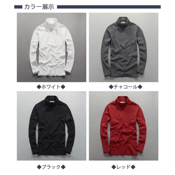 Tシャツ カットソー メンズ 長袖 無地 タートルネック 綿100% 柔らかい カジュアル シンプル インナー