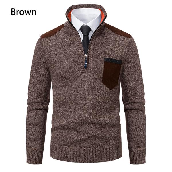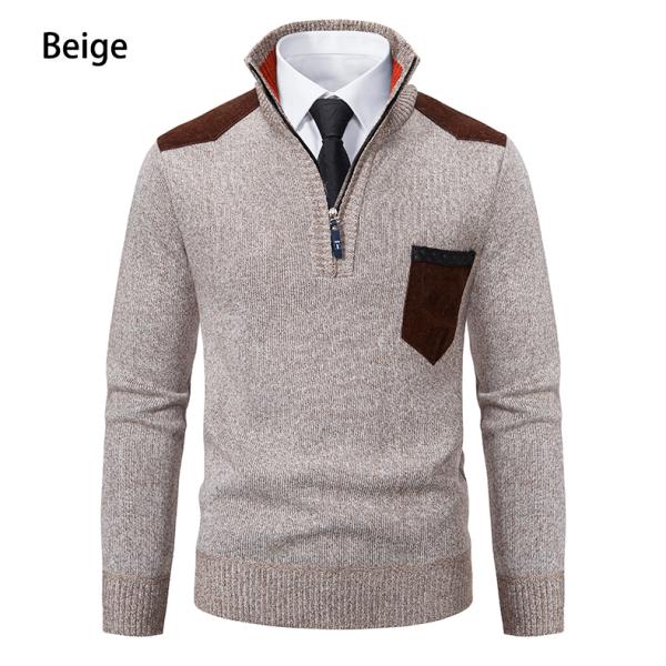 セーター メンズ ポケット付き ハイネック スタンドカラー ハーフジップ 配色トップス ニット ギフト 保温 防寒 秋冬