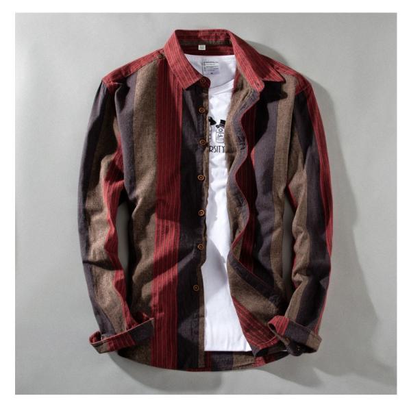 ストライプシャツ シャツ メンズ 長袖 カジュアルシャツ おしゃれ カラー配色 ストライプ柄 羽織り スリム トップス メンズシャツ メンズファッション