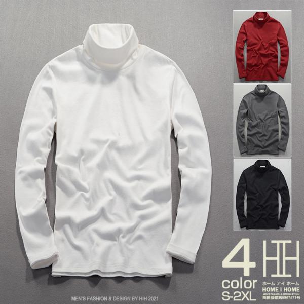 Tシャツ カットソー メンズ 無地 長袖 タートルネック 柔らかい 綿100% カジュアル シンプル インナー