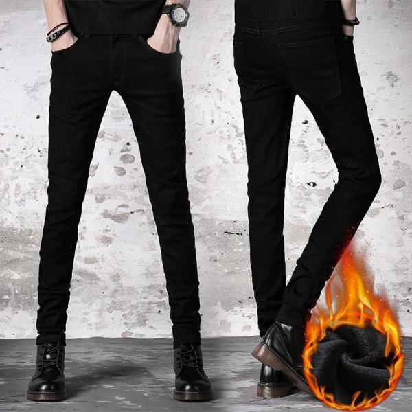 デニムスキニー デニムパンツ メンズ カジュアル ストレッチ 裏ボア 冬服 秋服 ジーンズ スリムパンツ 美シルエット 防寒 黒 ブラック