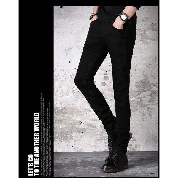 デニムスキニー デニムパンツ メンズ カジュアル ストレッチ 裏ボア 冬服 秋服 ジーンズ スリムパンツ 美シルエット 防寒 黒 ブラック