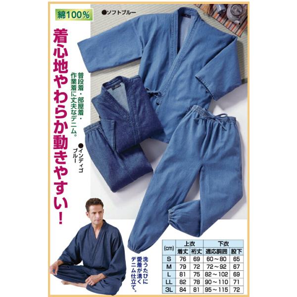デニム作務衣 甚平 浴衣 メンズ さむえ 部屋着 作業着 普段着 紳士 男性 和服 和風 上下セット 長袖 長ズボン 綿100 コットン 父の日 お父さん おじいちゃん