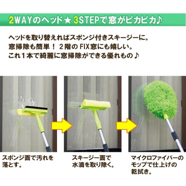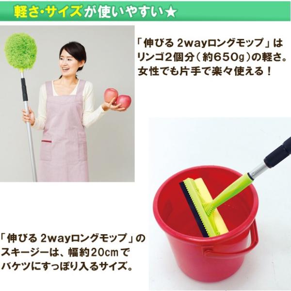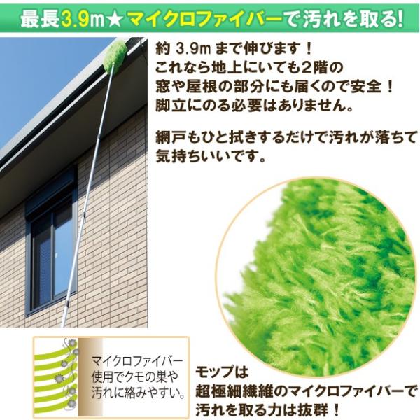 伸びる2wayロングモップ お掃除便利グッズ モップ拭き 高所 外壁掃除 マイクロファイバーロングモップ 送料無料