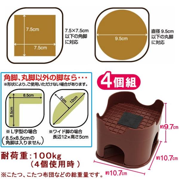 耐荷重(約)/100kg(4個使用時)※こたつ、こたつ布団などの総重量です。