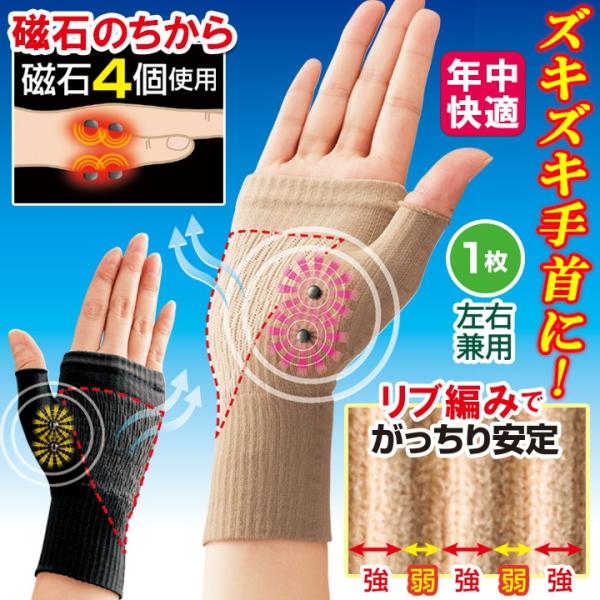 手首の関節サポーター 手首 サポーター 腱鞘炎 固定 薄手 親指 腱鞘サポーター着圧磁気ら〜くメッシュタイプ(メール便可)
