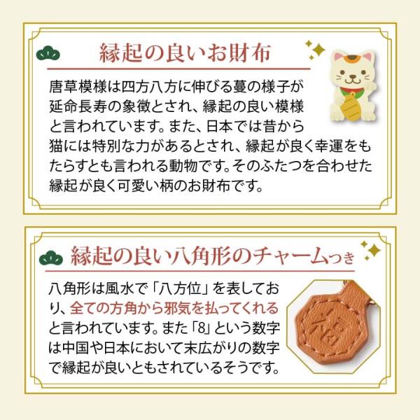 財布 長財布 唐草模様 猫 ねこ 猫グッズ 猫柄 八角チャーム 縁起が良い レディース メンズ 札入れ 小銭入れ カード入れ ポケット ラウンドファスナー 福猫長財布