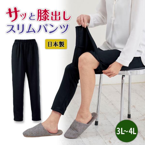 レディース 婦人 ボトムス ズボン 長ズボン ファスナー付 美脚見え スッキリライン 実用性 日本製 サッと膝出しスリムパンツ 3L〜4L